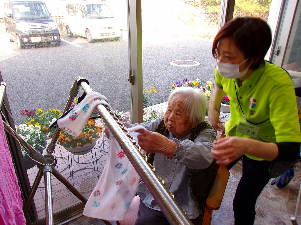 けやき庵は女性職員や女性の利用者様が多いので「私とお雛様どっちが綺麗?」